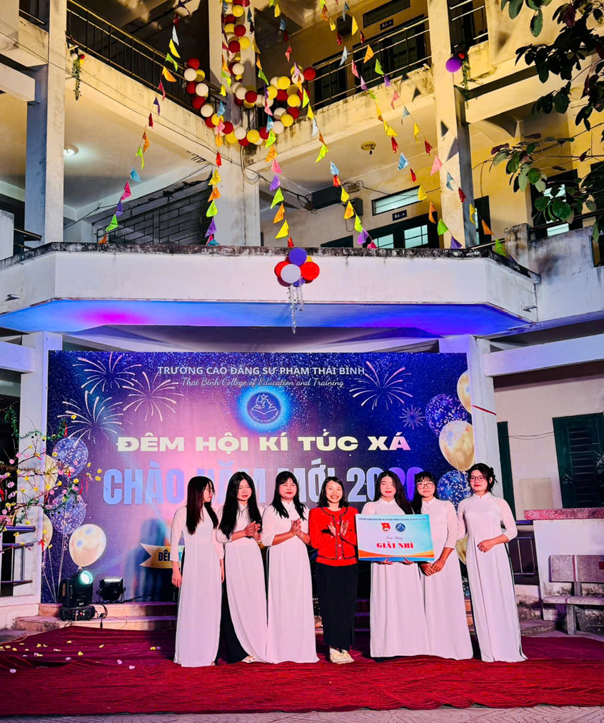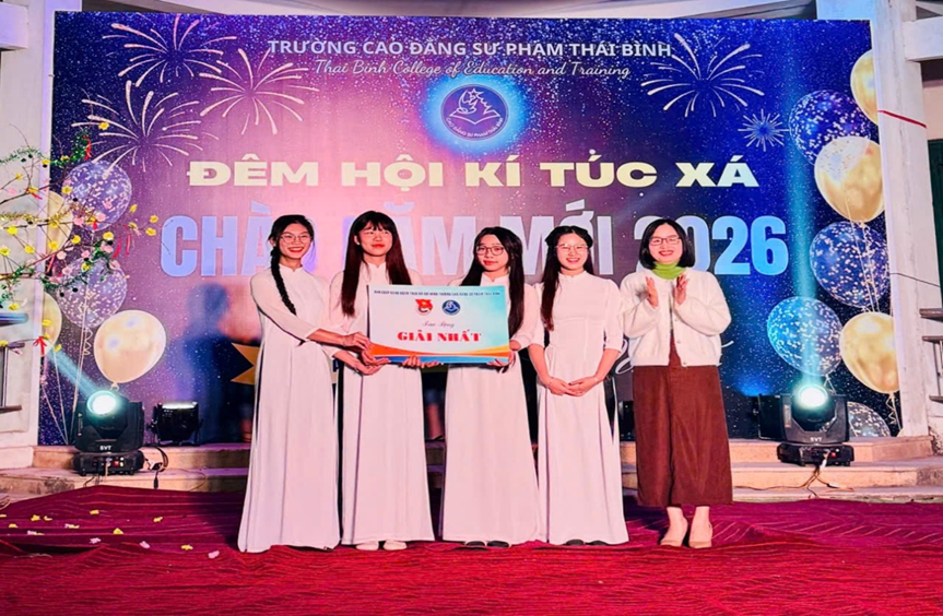 Đêm hội KÝ TÚC XÁ CHÀO ĐÓN NĂM MỚI 2026 đã diễn ra an toàn, đúng kế hoạch, để lại nhiều ấn tượng tốt đẹp trong lòng cán bộ, giảng viên và học sinh, sinh viên. Thành công của chương trình là kết quả của sự quan tâm, chỉ đạo sát sao của Ban Giám hiệu nhà trường, Đoàn Thanh niên, sự phối hợp chặt chẽ của các đơn vị chức năng cùng tinh thần trách nhiệm, nhiệt tình tham gia của học sinh, sinh viên ký túc xá. Thông qua Đêm hội, Nhà trường tiếp tục khẳng định vai trò của các hoạt động văn hóa, văn nghệ trong việc giáo dục toàn diện, góp phần xây dựng môi trường giáo dục lành mạnh, thân thiện. Tin tưởng rằng, với khí thế phấn khởi và tinh thần đoàn kết từ Đêm hội, học sinh, sinh viên Trường Cao đẳng Sư phạm Thái Bình sẽ bước vào năm mới 2026 với quyết tâm cao, tiếp tục nỗ lực học tập, rèn luyện, góp phần xây dựng Nhà trường ngày càng phát triển vững mạnh.