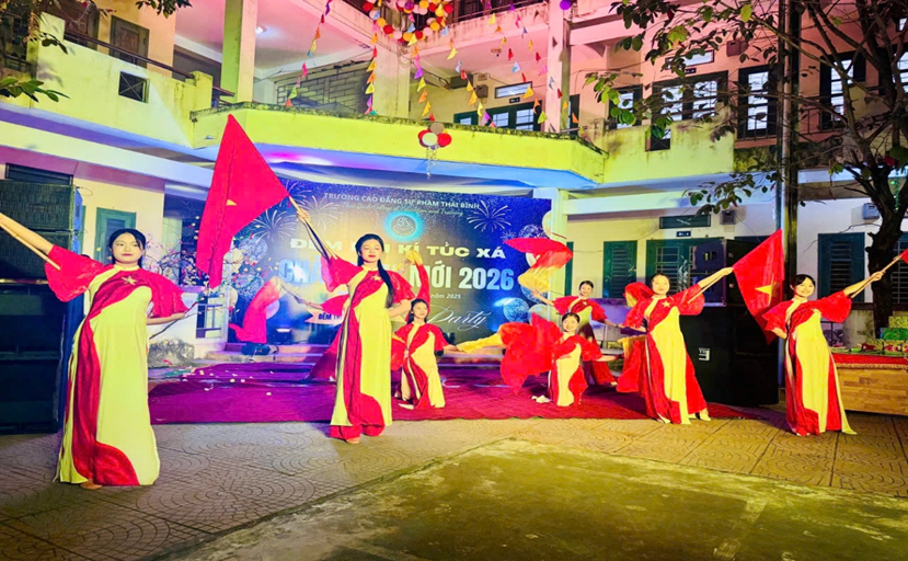 Tối ngày 30/12/2025, tại khu Ký túc xá Trường Cao đẳng Sư phạm Thái Bình, ĐÊM HỘI KÝ TÚC XÁ CHÀO ĐÓN NĂM MỚI 2026 đã diễn ra trong không khí sôi động, ấm áp và đoàn kết. Đây là hoạt động văn hóa – tinh thần có ý nghĩa thiết thực nhằm tạo không khí vui tươi, phấn khởi chào đón năm mới, đồng thời tăng cường sự gắn bó, đoàn kết giữa học sinh, sinh viên đang sinh hoạt, học tập tại ký túc xá trường Cao đẳng Sư phạm Thái Bình.