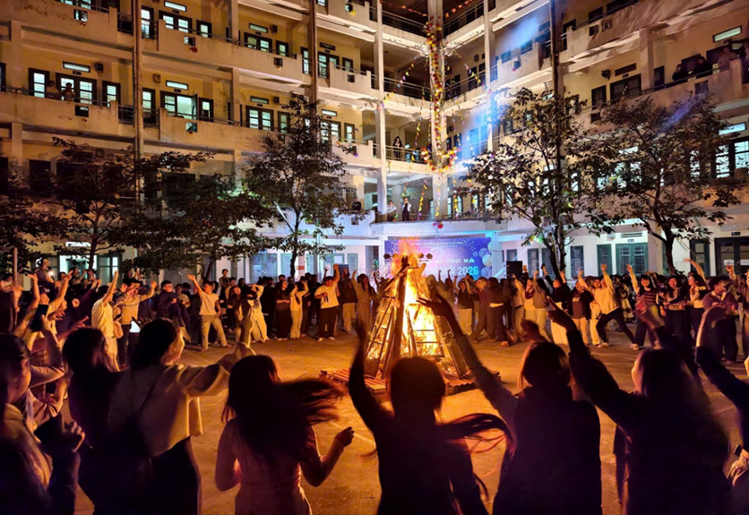 Bên cạnh đó, các trò chơi tập thể sôi động được tổ chức đã thu hút sự tham gia nhiệt tình của đông đảo sinh viên, tạo điều kiện để các em giao lưu, tăng cường tinh thần đoàn kết, gắn bó và hỗ trợ lẫn nhau trong học tập cũng như cuộc sống hằng ngày tại ký túc xá. Điểm nhấn đặc biệt của chương trình là hoạt động đốt lửa trại chào năm mới 2026. Trong ánh lửa bập bùng, thầy và trò cùng quây quần, chia sẻ những khoảnh khắc ấm áp, gửi gắm niềm tin và hy vọng vào một năm mới với nhiều thành công. Hoạt động này không chỉ mang giá trị tinh thần sâu sắc mà còn góp phần vun đắp tình cảm thầy trò, tình bạn bè và ý thức gắn bó với mái trường Cao đẳng Sư phạm Thái Bình.