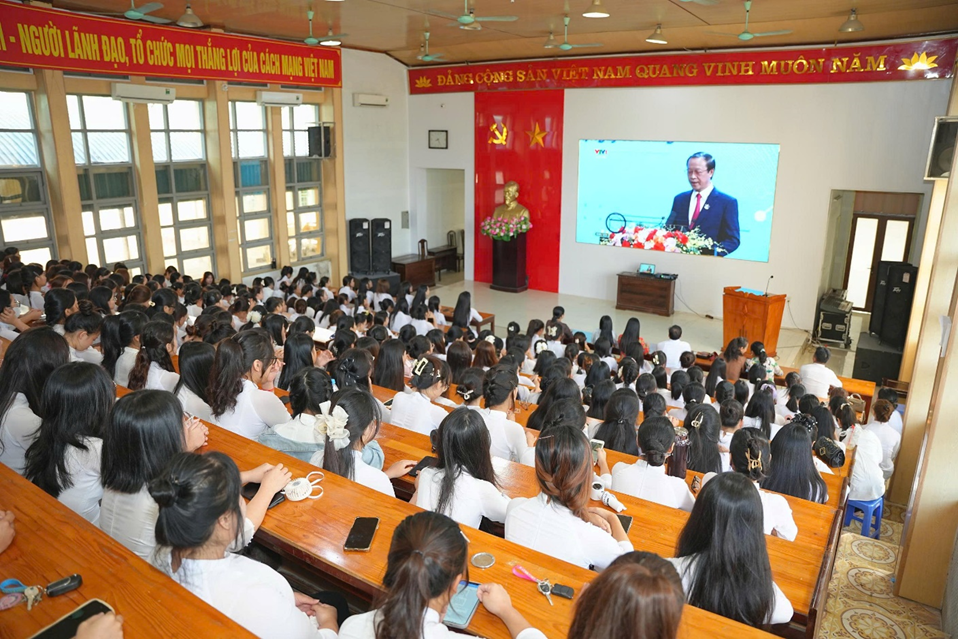 Điểm tiếp sóng Nhà đa năng với hơn 800 quý đại biểu, quý phụ huynh, cán bộ, giảng viên và học sinh, sinh viên.