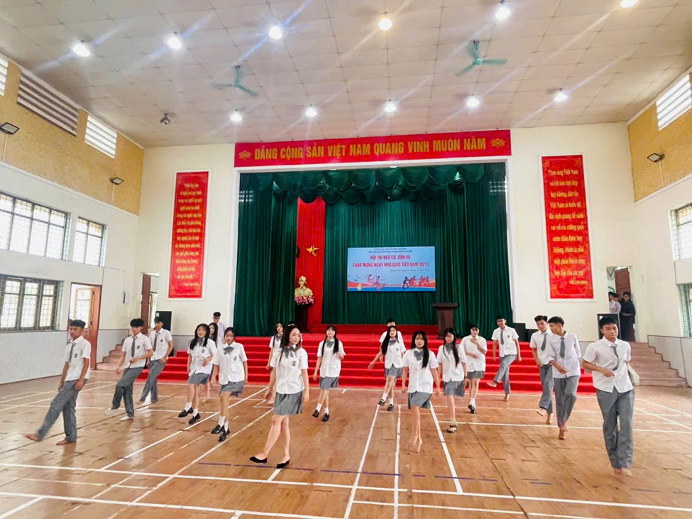 Ngay từ khi phát động, Hội thi đã nhận được sự hưởng ứng vô cùng mạnh mẽ từ tất cả các lớp. Điều ấn tượng nhất không chỉ là sự tham gia đông đảo, mà còn là tinh thần hăng say tập luyện của các bạn học sinh. “Chúng tôi đã bắt đầu tập luyện từ gần 2 tuần trước khi Hội thi diễn ra. Sau những giờ học căng thẳng, các bạn lại tụ tập tại sân trường, hành lang, hay bất cứ không gian nào có thể. Có những buổi tập kéo dài đến tối muộn. Dù mệt, nhưng ai cũng thấy vui và đầy năng lượng, vì chúng tôi đang cùng nhau tạo nên một món quà ý nghĩa nhất để chào mừng ngày Hiến chương Nhà giáo 20/11” – một thành viên của đội thi chia sẻ. Tinh thần này đã tạo nên một bức tranh đẹp về sự đoàn kết, năng động, sáng tạo. Các nhóm tự phân công nhau từ biên đạo, chọn nhạc, trang phục, cho đến việc chỉnh sửa từng động tác nhỏ nhất. Sự tỉ mỉ, kiên nhẫn và trách nhiệm cao độ trong quá trình chuẩn bị chính là nền tảng cho những màn trình diễn bùng nổ trên sân khấu.