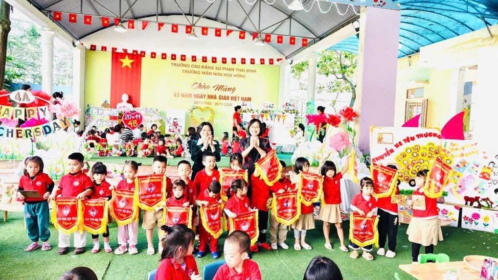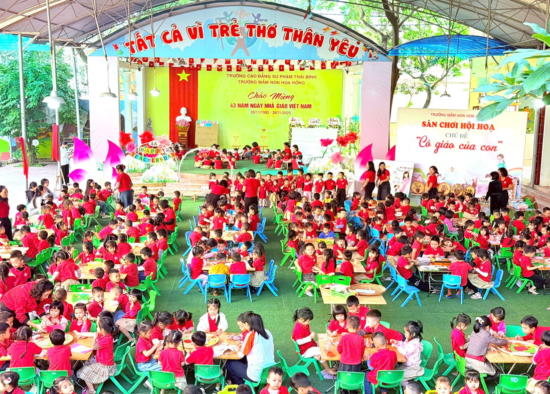 Hướng tới chào mừng Ngày Nhà giáo Việt Nam 20/11, sáng ngày 14/11/2025 Trường Mầm non Hoa Hồng – trực thuộc Trường Cao đẳng Sư phạm Thái Bình tổ chức Sân chơi Hội họa với chủ đề “Con yêu cô giáo” nhằm tạo môi trường cho trẻ phát huy trí tưởng tượng, khả năng sáng tạo và bồi đắp tình cảm yêu thương dành cho cô giáo của mình. Hoạt động cũng góp phần tăng cường giao lưu giữa các khối lớp, xây dựng môi trường giáo dục thân thiện và tràn đầy yêu thương.