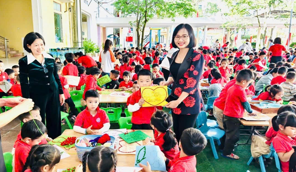 Nhà giáo, TS. Phạm Thị Ánh Nguyệt và Ban giám hiệu trường Mầm non Hoa Hồng dự, động viên thầy cô và các bé.