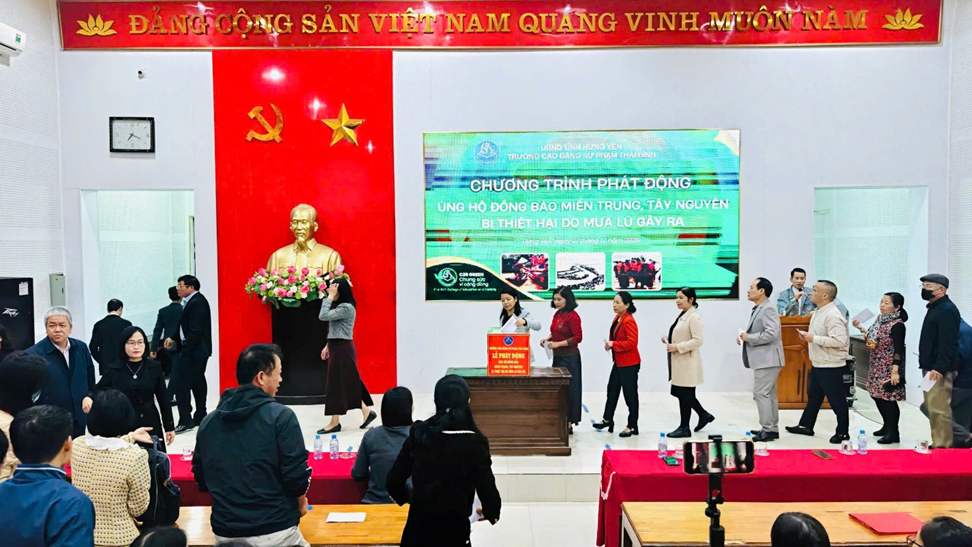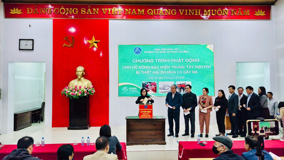 Trong không khí sẻ chia hướng về đồng bào vùng tâm lũ, sáng ngày 1 tháng 12, Trường Cao đẳng Sư phạm Thái Bình đã tổ chức Lễ phát động ủng hộ đồng bào miền Trung, Tây Nguyên bị thiệt hại do bão lũ. Chương trình nhằm kêu gọi tập thể cán bộ, giáo viên, người lao động và học sinh, sinh viên chung tay ủng hộ những địa phương đang gặp khó khăn sau mưa lũ kéo dài.