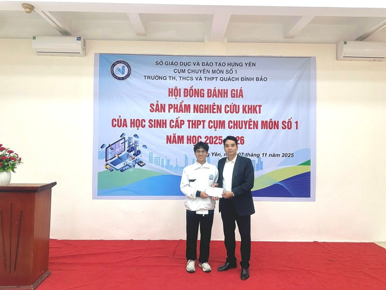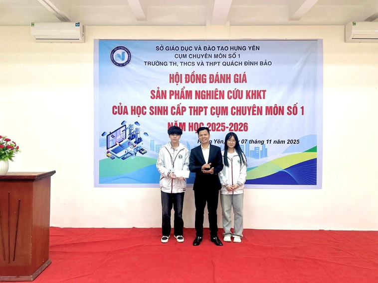 Cụm chuyên môn số 1 thuộc Sở GD&ĐT Hưng Yên ban hành Kế hoạch số 02/KH-CM1 ngày 28/10/2025 về việc tổ chức Hội đồng đánh giá sản phẩm nghiên cứu KHKT của học sinh cấp THPT. Năm học này, Trường TH, THCS & THPT Quách Đình Bảo vinh dự được chọn làm đơn vị tổ chức Hội đồng đánh giá sản phẩm nghiên cứu KHKT của học sinh cấp THPT Cụm chuyên môn số 1.