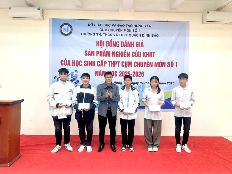 Hội đồng đánh giá sản phẩm Nghiên cứu Khoa học Kĩ thuật của học sinh cấp THPT Cụm chuyên môn số 1 năm học 2025–2026 đã thành công tốt đẹp, thể hiện tinh thần sáng tạo, hợp tác và khát vọng học hỏi của học sinh các trường trong cụm. Các sản phẩm đạt giải là minh chứng cho sự nỗ lực, tâm huyết của thầy và trò trong hoạt động nghiên cứu khoa học, góp phần lan tỏa phong trào học tập sáng tạo trong toàn ngành.