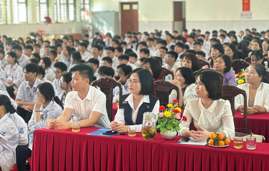 Cô Lộ Thị Phương – Chuyên viên Phòng Giáo dục Trung học, Sở Giáo dục và Đào tạo Hưng Yên cùng Tiến sĩ Phạm Thị Ánh Nguyệt – Bí thư Đảng ủy, Hiệu trưởng Trường Cao đẳng Sư phạm Thái Bình đến dự buổi sinh hoạt chuyên đề “Sân khấu hóa tác phẩm văn học – Khơi nguồn cảm hứng học văn”.