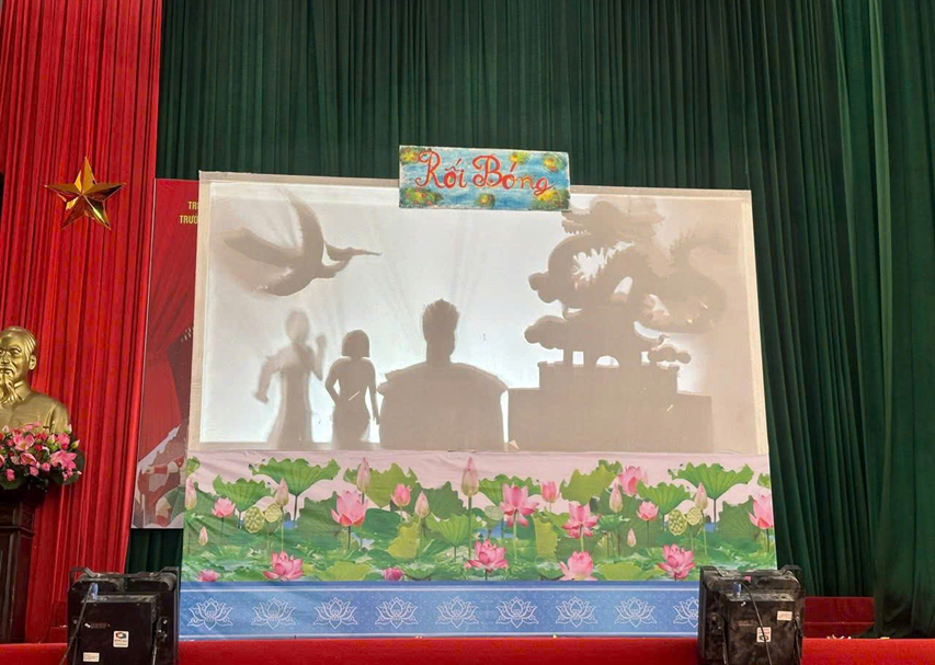 Tiết mục rối bóng “Truyền thuyết Con Rồng Cháu Tiên” do tập thể lớp 10A10 biểu diễn.