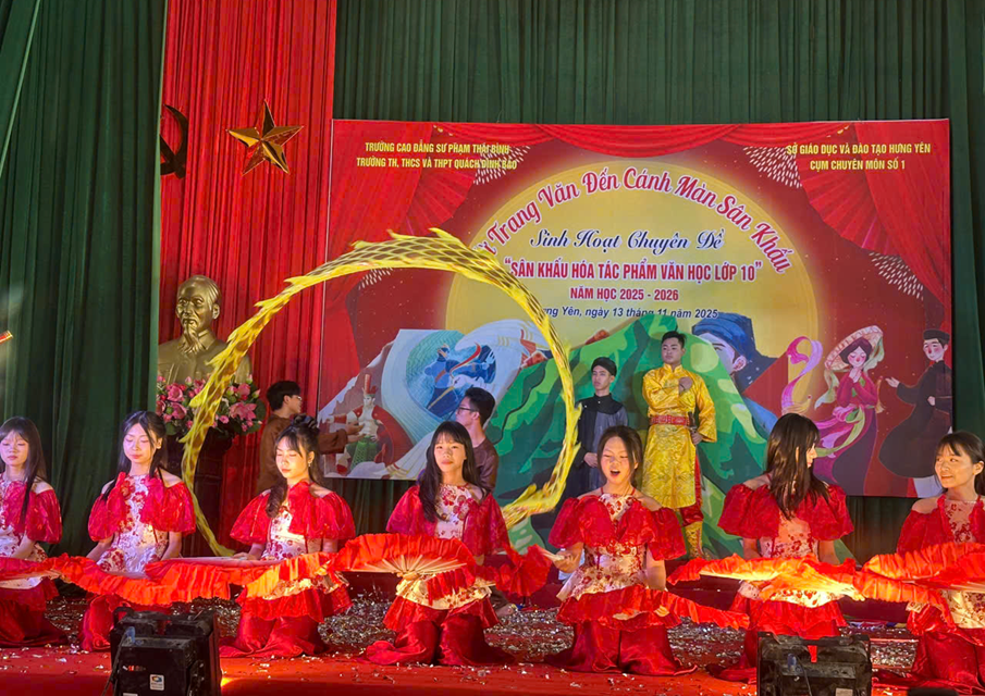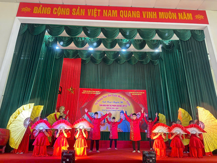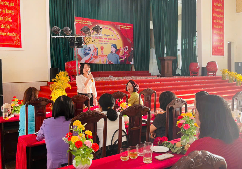Buổi sinh hoạt chuyên môn khép lại trong không khí phấn khởi, để lại nhiều ấn tượng sâu sắc và niềm cảm hứng lan tỏa trong phong trào dạy và học Ngữ văn của toàn cụm chuyên môn. “Sân khấu hóa tác phẩm văn học” không chỉ là một chuyên đề mang tính học thuật mà còn là hành trình đưa học sinh đến gần hơn với cái đẹp, cái thiện và cội nguồn văn hóa Việt Nam – giúp các em yêu Văn, yêu người và yêu cuộc sống hơn mỗi ngày./.
